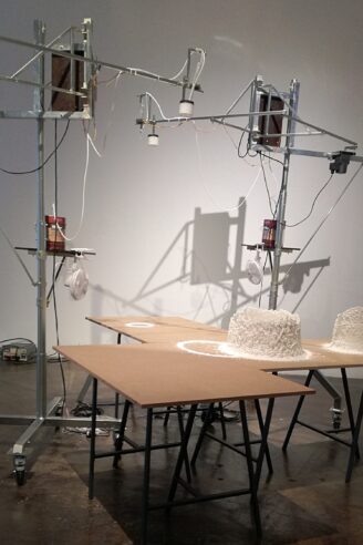 Og maskinerne har ikke intentioner. De har præmisser. Forsøgene har nogle rammer; en maskine, der bygger cylindere i paraffin, undersøger ikke det samme, som en maskine, der producerer sæbeboble-akvareller baseret på vejrforholdene, og ingen af dem undersøger, om månen er en bordtennisbold, eller om marmorblokke kan flyde.