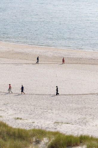 Landskabet ved Blåvandshuk er vind og vejr, her brydes bølgerne og her vaskes sandfladen ren. Her skabte Molly Haslund værket Uendelig, som del af gruppeudstillingen First There Is A Mountain, Wadden Tide, 2023, kurateret af Empathic Environments.