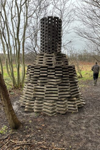 Et rundt tårn troner blandt trætoppene uden for Bedsted. Fra vejen ved stationen kan man skimte det nye element i det fjerne, men det er svært at afkode, hvad den skulpturelle form består af. Som man kommer tættere på, bliver det dog tydeligt, at det er gamle betonfliser, der møjsommeligt er stablet oven på hinanden som en cylinderformet skulptur i skoven.
